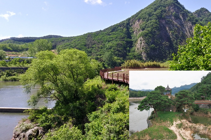 우리나라에는 100여개의 팔경이 있다고 하는데 그 중 영동에는 두개의 팔경을 품고 있습니다. 소백준령이 끼고 있으면서도 굽이 치는 금강의 맑은 물까지 함께 품고 있으면서 달이 흘러 머무는 봉우리 월류봉은 금강 지류의 굽이에 우뚝 솟은 거대한 바위봉우리인데 수묵화 속의 풍경으로 들어 온듯한 황홀함을 느낄수 있답니다. 월류봉 옆에는 우암 송시열 선생의 은둔지인 한천정사가 들어서 있는데 달밤에 대청마루에서 보면 높게 떠오른 달이 월류봉 능선의 여섯 봉우리를 따라 서쪽으로 흐른 하여 달이 머문다는 월류봉 이름이 생겼다고 합니다. 한천 8경은 계절따라 시간따라 변하는 거대한 월류봉의 8가지 모습을 일컬어 한천 8경이라고 합니다. 2경 화현악은 봄에 피는 꽃과 울긋불긋 단풍든 가을의 절경이고, 3경 용연동은 산 아래의 깊은 연못의 절경, 4경 산양벽은 깍아지른 절벽을 말합니다. 5경 청학골과 6경 법존암은 위치를 아는 이가 없고 7경 사군봉과 8경 내천정도 월류봉과 물줄기 주변의 어딘가의 절경이라는 것 정도만으로 이름만 있습니다.